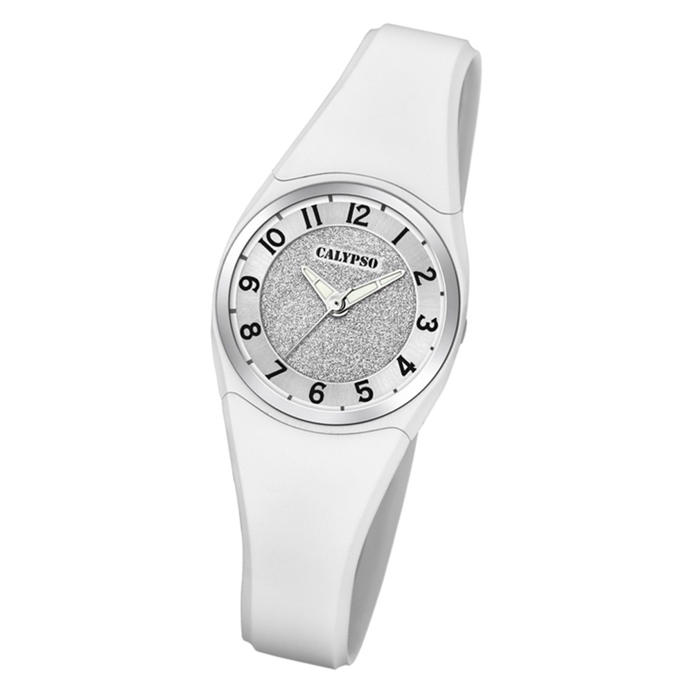 Modisch, sportlich und immer up to date - so zeigt sich auch diese stylische Uhr von Calypso. Die Fashion-Uhr K5752/1 für Damen verfügt über ein präzises Quarzwerk und ist bis 10 bar wasserdicht. Das hochwertige PU-Armband in weiß garantiert einen hohen Tragekomfort zu einem unschlagbar günstigen Preis.- besondere Eigenschaften