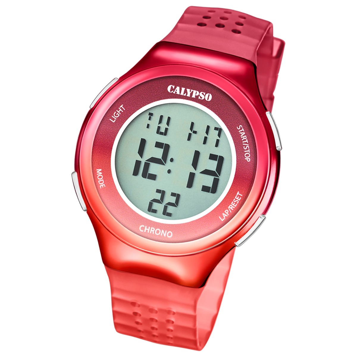 Calypso Damenuhr Kautschuk rot Calypso Digital Armbanduhr UK5841/5