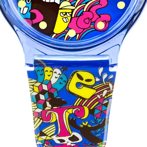 - Comic-Motiv und Chic-Logo auf dem Armband und dem Ziffernblatt