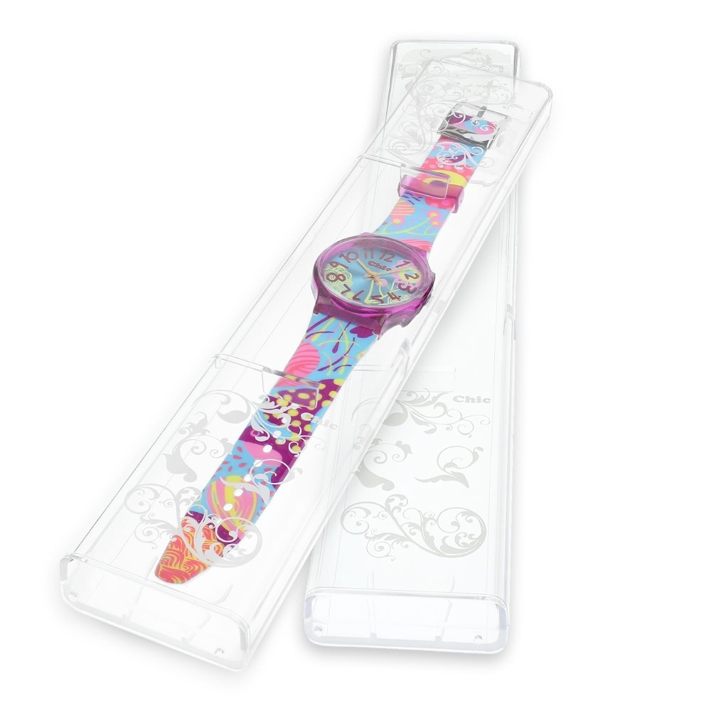 Mit den Uhren der Chic Watches Kollektion liegen Sie im aktuellen Modetrend. Die Mädchen- und Damenuhren wurden von junger Street-Style Kunst inspiriert. Die expressiven Motive weisen einen phantasievollen Einsatz von Form und Farbe auf. Chic Uhren sind farbenfrohe Armbanduhren für Mädchen und Frauen, die Freude am Leben haben und diese auch gern zum Ausdruck bringen.
