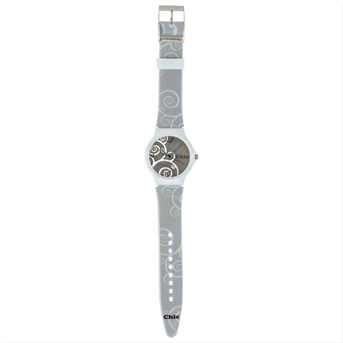 Damen Armbanduhr - Floral - mit grauem Kunststoffarmband und grauem Ziffernblatt aus der Chic-Watches Lady Uhrenkollektion.