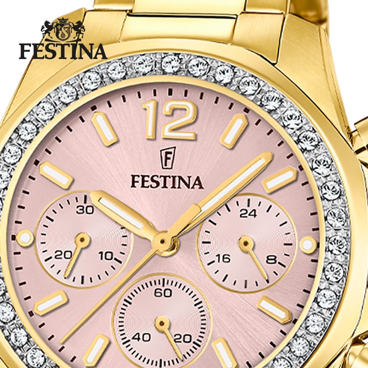 Diese einzigartige Uhr für Damen aus der aktuellen Festina Boyfriend Kollektion garantiert hohen Tragekomfort durch das hochwertige Edelstahl-Armband in gold. Der Chronograph ist ein zuverlässiger Begleiter in Alltag und Freizeit.- besondere Eigenschaften