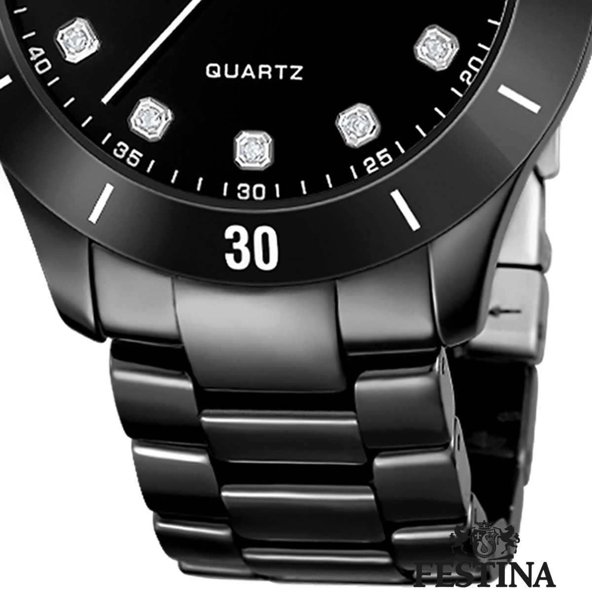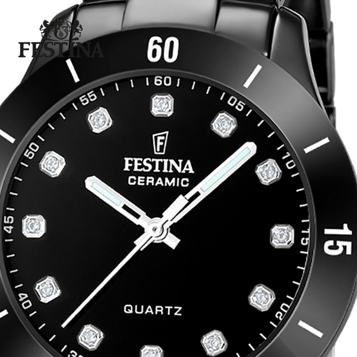 Diese einzigartige Uhr für Damen aus der aktuellen Festina Keramik Kollektion garantiert hohen Tragekomfort durch das hochwertige Keramik-Armband in schwarz. Die Armbanduhr mit analoger Anzeige ist ein zuverlässiger Begleiter in Alltag und Freizeit.- besondere Eigenschaften