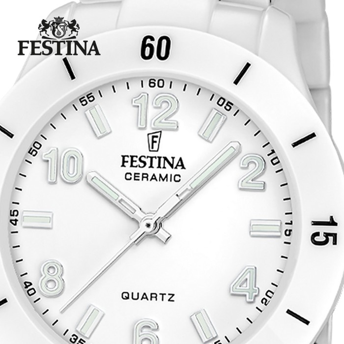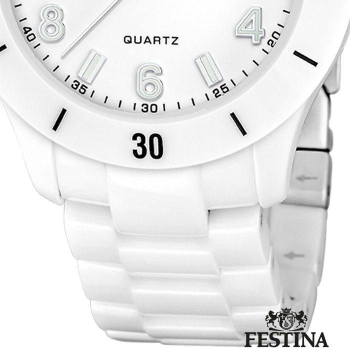 Diese einzigartige Uhr für Damen aus der aktuellen Festina Keramik Kollektion garantiert hohen Tragekomfort durch das hochwertige Keramik-Armband in weiß. Die Armbanduhr mit analoger Anzeige ist ein zuverlässiger Begleiter in Alltag und Freizeit.Die FESTINA Keramik Kollektion besticht durch ihre kosmopolitische Ausstrahlung. Aus hochwertiger, kratzfester High-Tech-Keramik gefertigt, bieten sie eine einzigartige Kombination aus Design und außergewöhnlicher Langlebigkeit.