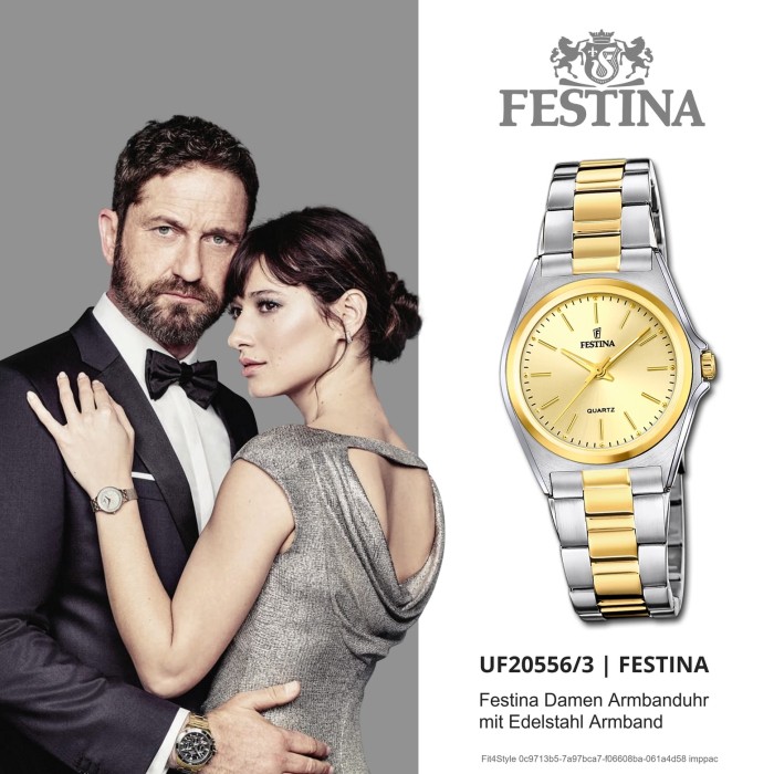 Diese einzigartige Uhr für Damen aus der aktuellen Klassik Kollektion garantiert hohen Tragekomfort durch das hochwertige Edelstahl-Armband in silber und gold. Die Armbanduhr mit analoger Anzeige und präzisem Armbanduhr ist ein zuverlässiger Begleiter in Alltag und Freizeit.Festina, lat. -Beeil dich- seit über 100 Jahren ist dies auf Ziffernblättern zahlreicher Uhren zu finden. 1902 in der Schweiz gegründet, wurde Festina 1984 durch den Spanier Miguel Rodriguez übernommen und hat seitdem seinen Sitz in Spanien. Mit Modellen von Festina bekommen Sie Uhren in hervorragender Qualität zu fairen Preisen. Festina verwendet ausschließlich erstklassige japanische oder Schweizer Uhrwerke.