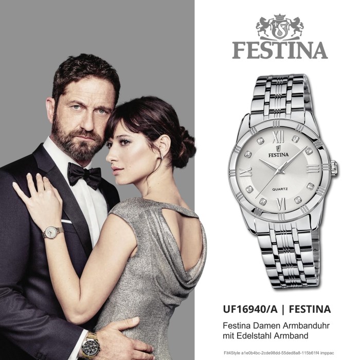 Festina, lat. -Beeil dich- seit über 100 Jahren ist dies auf Ziffernblättern zahlreicher Uhren zu finden. 1902 in der Schweiz gegründet, wurde Festina 1984 durch den Spanier Miguel Rodriguez übernommen und hat seitdem seinen Sitz in Spanien. Mit Modellen von Festina bekommen Sie Uhren in hervorragender Qualität zu fairen Preisen. Festina verwendet ausschließlich erstklassige japanische oder Schweizer Uhrwerke.