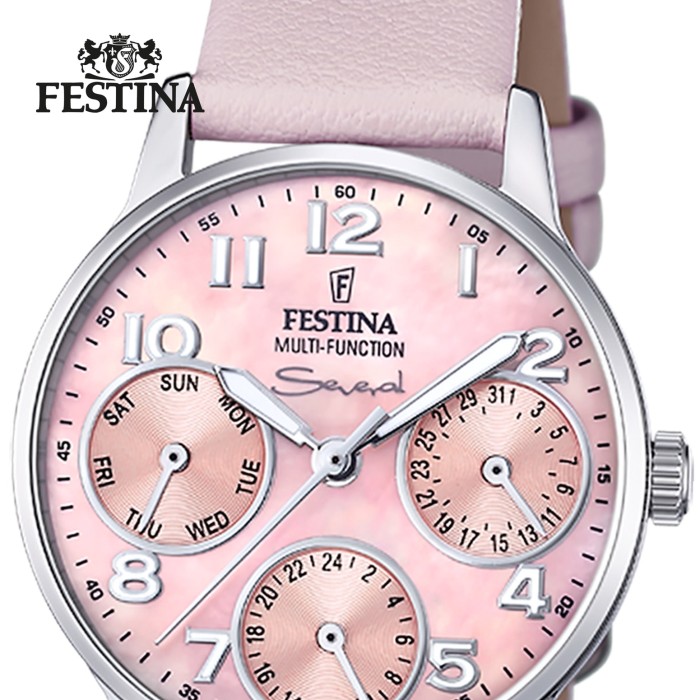 Diese einzigartige Uhr für Damen aus der aktuellen Festina Mademoiselle Kollektion garantiert hohen Tragekomfort durch das hochwertige Leder-Armband in rosa. Die Armbanduhr mit analoger Anzeige ist ein zuverlässiger Begleiter in Alltag und Freizeit.Die FESTINA Mademoiselle Kollektion vereint Glamour und Weiblichkeit. In jedem Design steckt eine Note Eleganz und ein funkelnder Swarovski-Kristall. Dies führt zum zarten und vornehmen Aussehen dieser Uhren.