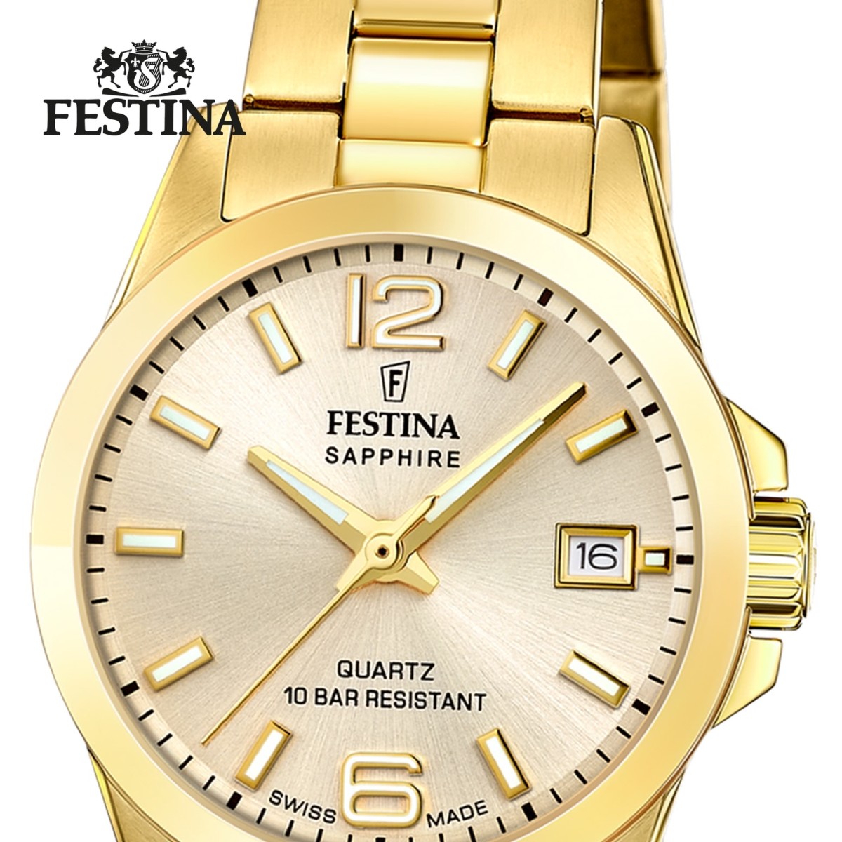 - Kurzbeschreibung: Festina Damenuhr Swiss Made Armbanduhr Edelstahl gold UF20050/2