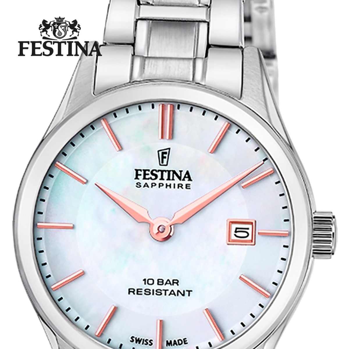 Festina Damenuhr Swiss Made Armbanduhr Edelstahl silber UF20068/2