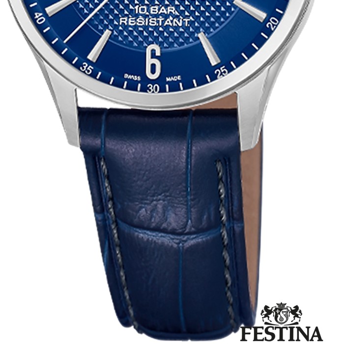 Diese einzigartige Uhr für Damen aus der aktuellen Festina Swiss Made Kollektion garantiert hohen Tragekomfort durch das hochwertige Leder-Armband in schwarz. Die Armbanduhr mit analoger Anzeige ist ein zuverlässiger Begleiter in Alltag und Freizeit.Die Kollektion Swiss Made von FESTINA sind exklusive Schweizer Uhren, die für Liebhaber von Präzision und Stil entworfen wurden. Die Uhren haben ein klassisches Design mit drei Zeigern und sind für Damen und Herren erhältlich.