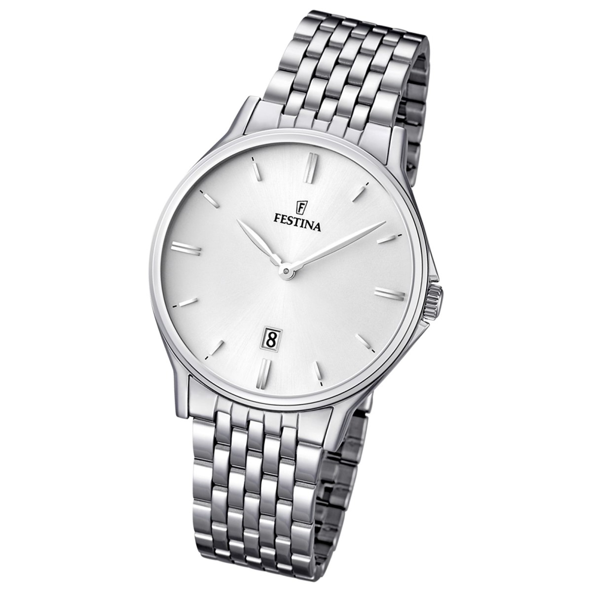 Edelstahl Herrenuhr aus der Festina Klassik-Kollektion analog Quarzwerk mit Edelstahl-ArmbandDie FESTINA Klassik-Kollektion zeichnet Uhren durch ihr bewährtes und unaufgeregtes Design aus. Auf diese dezenten und zeitlosen Uhren kann man sich über Jahre verlassen.