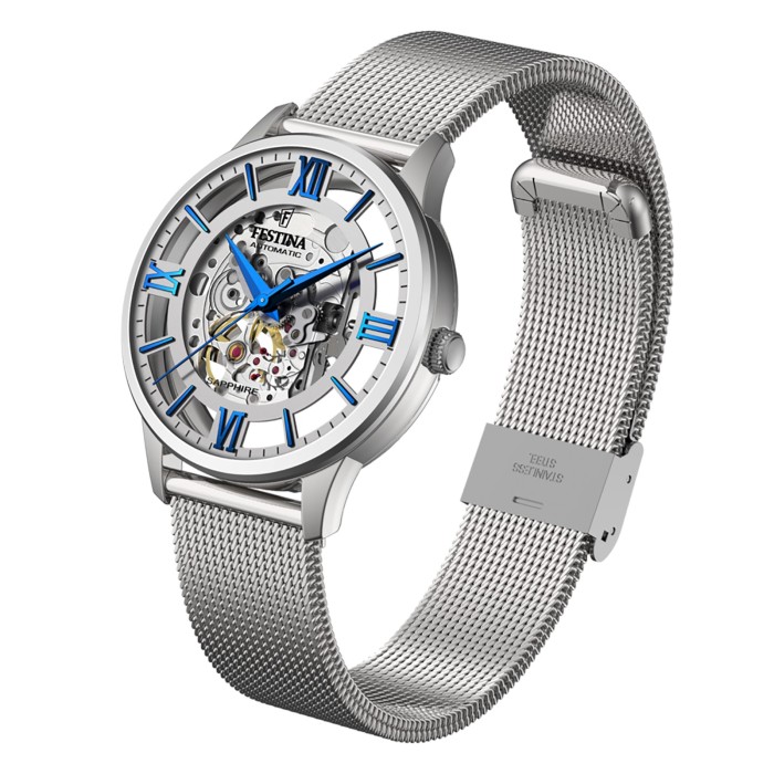 Die FESTINA Automatik Kollektion überzeugt optisch durch ein robustes Edelstahlgehäuse. Das Armband dieser Uhren ist in den verschiedensten Materialien wählbar.