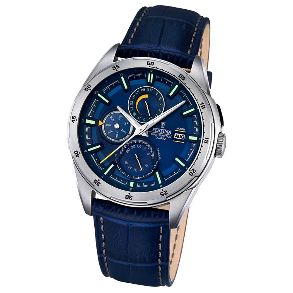 Festina Herren-Armbanduhr Multifunktion analog Quarz-Uhr Leder blau UF16877/2