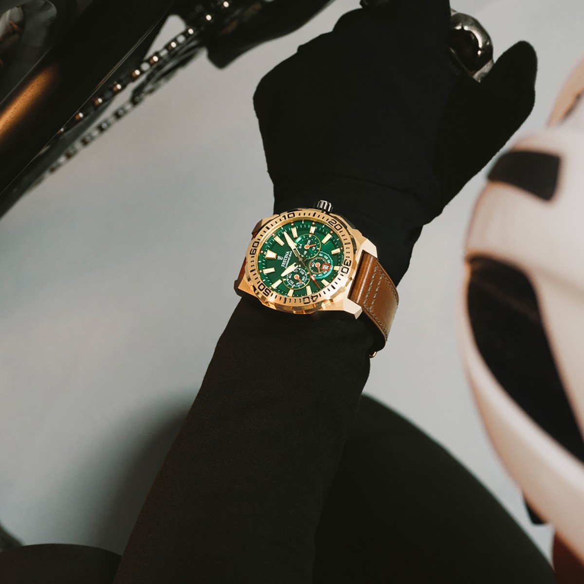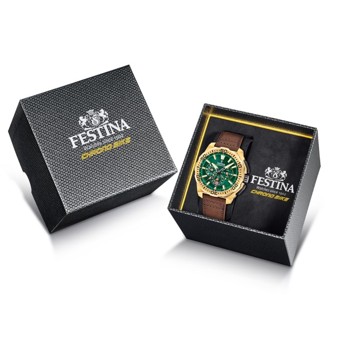 Die ?Chrono Bike? Kollektion von Festina sind sportliche Uhren, die vom Radsport inspiriert sind. Sie haben ein robustes Gehäuse, ein leuchtendes Zifferblatt, ein präzises Quarzwerk und ein sportliches Armband.
