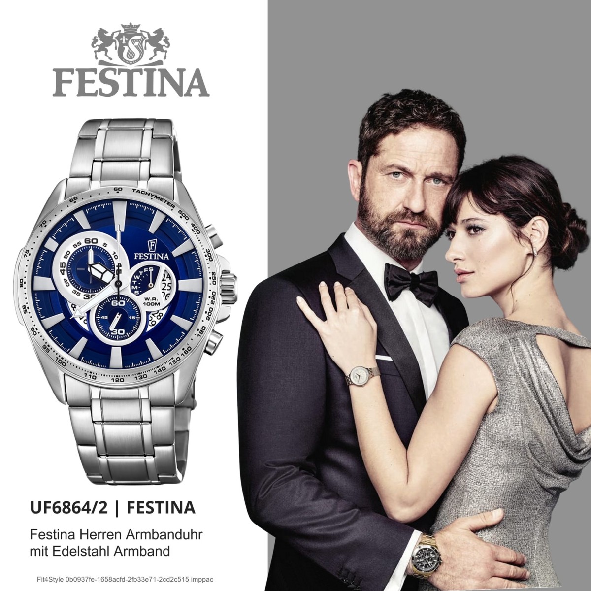 Festina Herren Armbanduhr Chronograph Sport F6864/2 Quarz Edelstahl silber UF6864/2