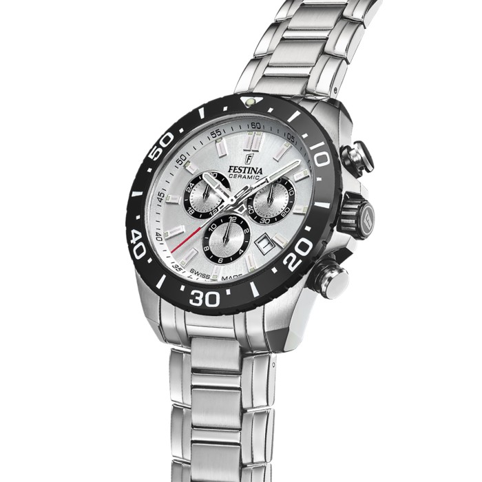 Diese einzigartige Uhr für Herren aus der aktuellen Festina Swiss made Kollektion garantiert hohen Tragekomfort durch das hochwertige Edelstahl-Armband in silber. Der Chronograph und präzisem Armbanduhr ist ein zuverlässiger Begleiter in Alltag und Freizeit.- besondere Eigenschaften