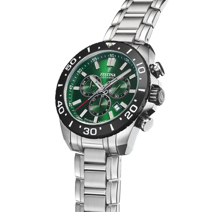 Diese einzigartige Uhr für Herren aus der aktuellen Festina Swiss made Kollektion garantiert hohen Tragekomfort durch das hochwertige Edelstahl-Armband in silber. Der Chronograph und präzisem Armbanduhr ist ein zuverlässiger Begleiter in Alltag und Freizeit.- besondere Eigenschaften
