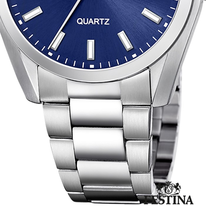Diese einzigartige Uhr für Herren aus der aktuellen Festina Klassik Kollektion garantiert hohen Tragekomfort durch das hochwertige Edelstahl-Armband in silber. Die Armbanduhr mit analoger Anzeige ist ein zuverlässiger Begleiter in Alltag und Freizeit.Die FESTINA Klassik Uhrenkollektion bietet zeitlos elegante Uhren für Damen und Herren. Sie zeichnen sich durch schlichtes Design, gute Lesbarkeit und eine raffinierte Ästhetik aus.