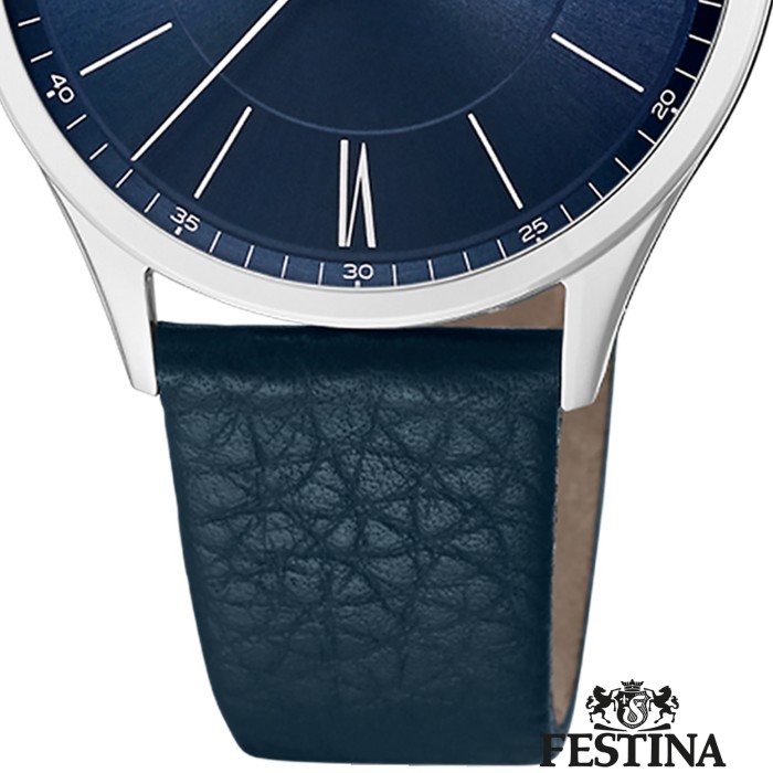 Diese einzigartige Uhr für Herren aus der aktuellen Festina Klassik Kollektion garantiert hohen Tragekomfort durch das hochwertige Leder-Armband in blau. Die Armbanduhr mit analoger Anzeige ist ein zuverlässiger Begleiter in Alltag und Freizeit.Die FESTINA Klassik Uhrenkollektion bietet zeitlos elegante Uhren für Damen und Herren. Sie zeichnen sich durch schlichtes Design, gute Lesbarkeit und eine raffinierte Ästhetik aus.