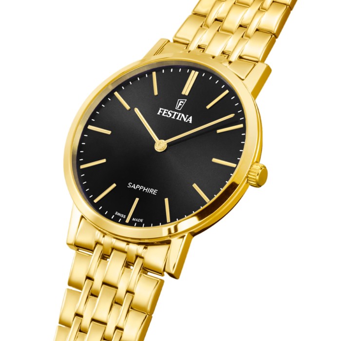 Diese einzigartige Uhr für Herren aus der aktuellen Swiss Made Kollektion garantiert hohen Tragekomfort durch das hochwertige Edelstahl-Armband in gold. Die Armbanduhr mit analoger Anzeige und präzisem Armbanduhr ist ein zuverlässiger Begleiter in Alltag und Freizeit.Die Kollektion ?Swiss Made? von Festina sind exklusive Schweizer Uhren, die für Liebhaber von Präzision und Stil entworfen wurden. Die Uhren haben ein klassisches Design mit drei Zeigern und sind für Damen und Herren erhältlich.