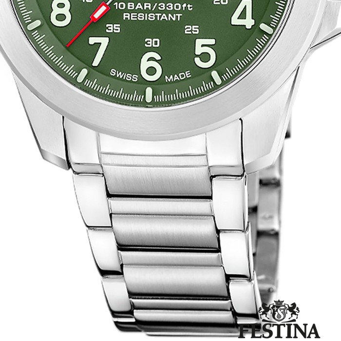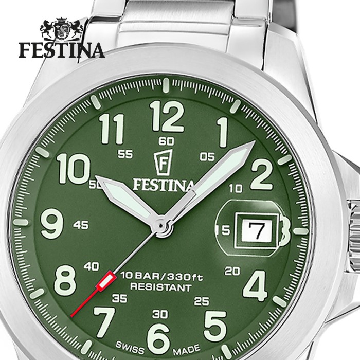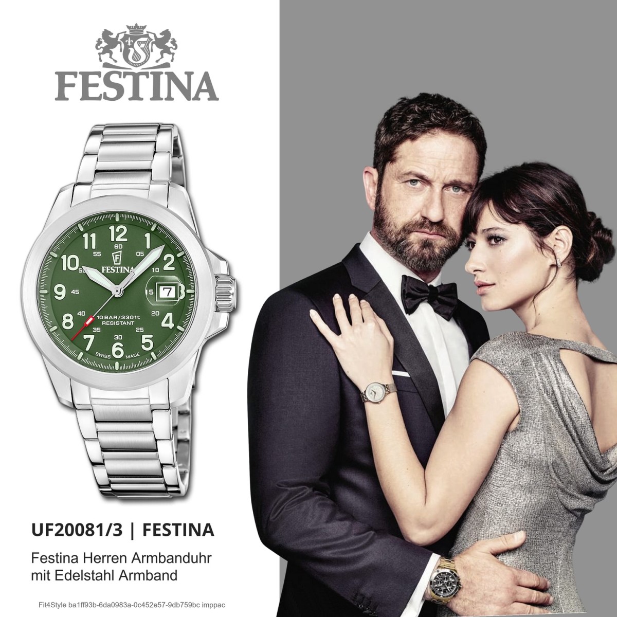 - Kurzbeschreibung: Festina Herrenuhr Swiss Made Armbanduhr Edelstahl Leder Textil gün UF20081/3