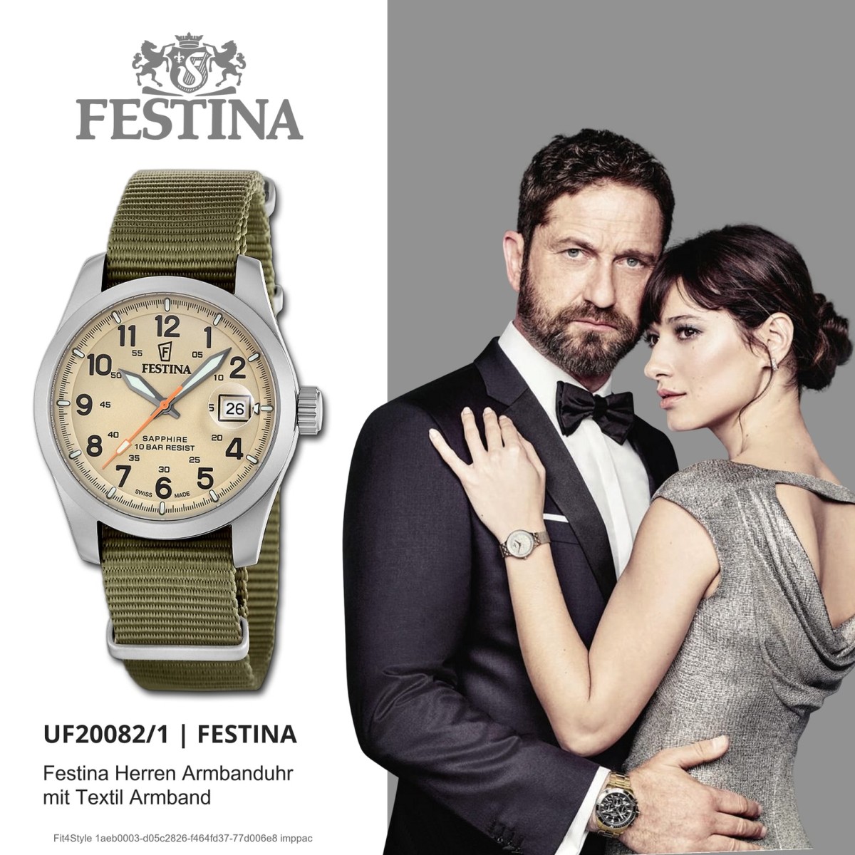 - Kurzbeschreibung: Festina Herrenuhr Swiss Made Armbanduhr Textil grün UF20082/1