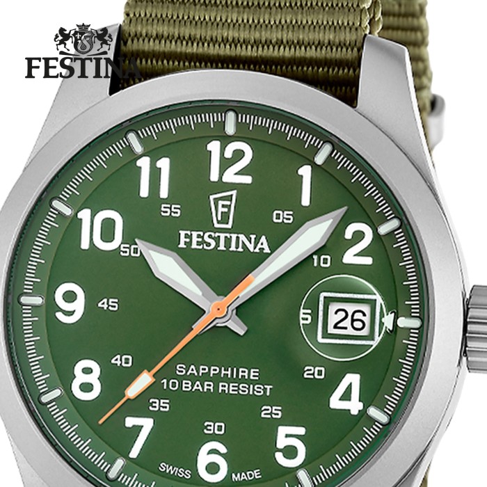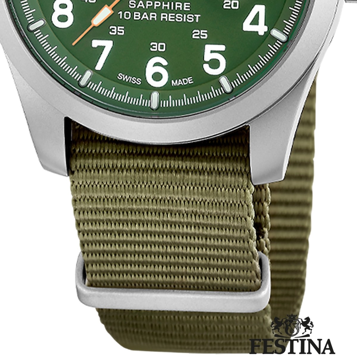 - Kurzbeschreibung: Festina Herrenuhr Swiss Made Armbanduhr Textil grün UF20082/2