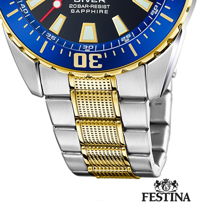 Diese einzigartige Uhr für Herren aus der aktuellen Festina The Originals Kollektion garantiert hohen Tragekomfort durch das hochwertige Edelstahl-Armband in silber und gold. Die Armbanduhr mit analoger Anzeige ist ein zuverlässiger Begleiter in Alltag und Freizeit.Die FESTINA Uhrenkollektion The Originals ist eine Reihe von sportlichen und farbenfrohen Uhren für Männer, die Persönlichkeit und Stil ausdrücken.