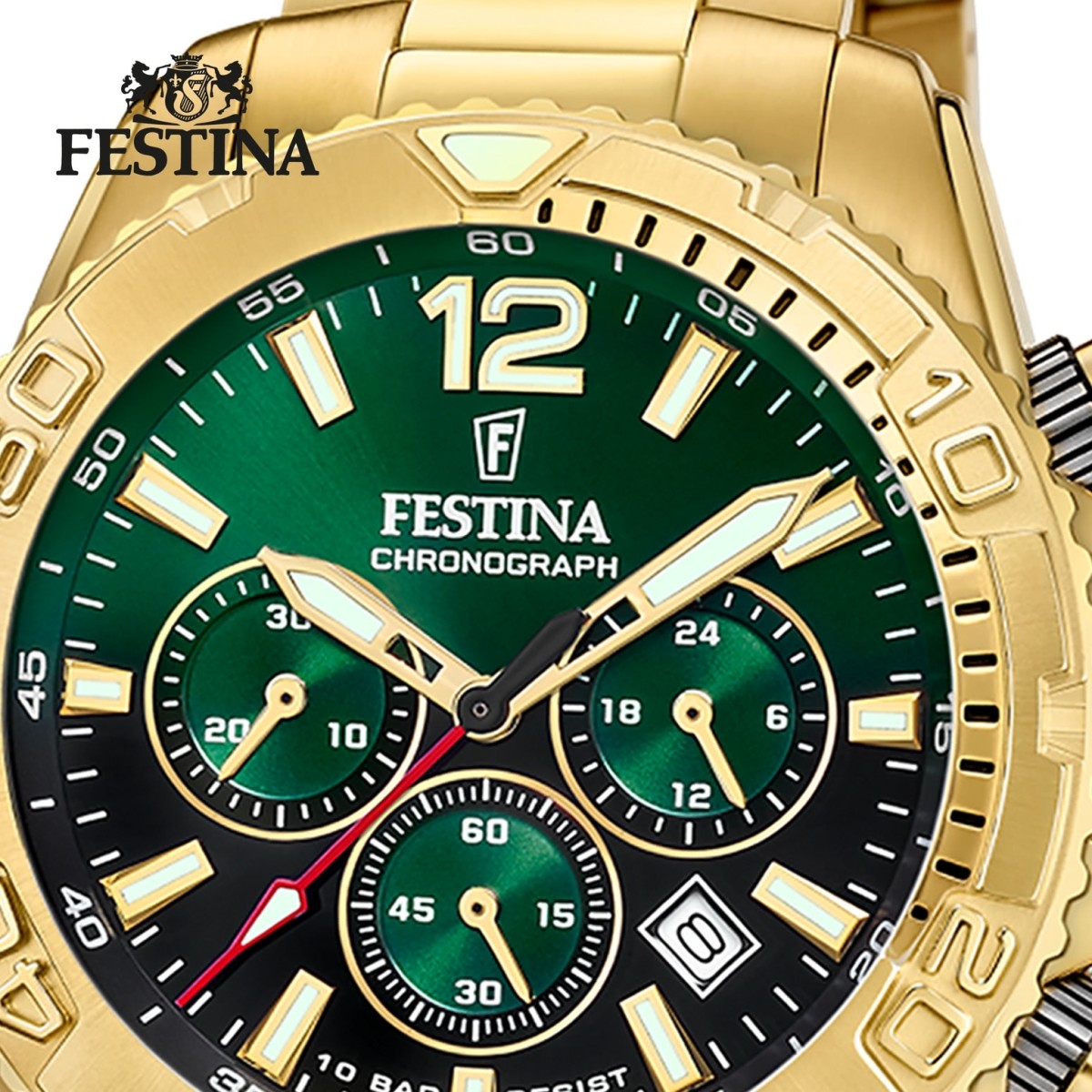 Die FESTINA Timeless Chrono Kollektion hinterlässt Eindruck mit hohem Wiedererkennungswert und raffinierten Designs. Die Kollektion hat eine diskrete zeitlose Art, die sich passend an ihr Handgelenk schmiegt.