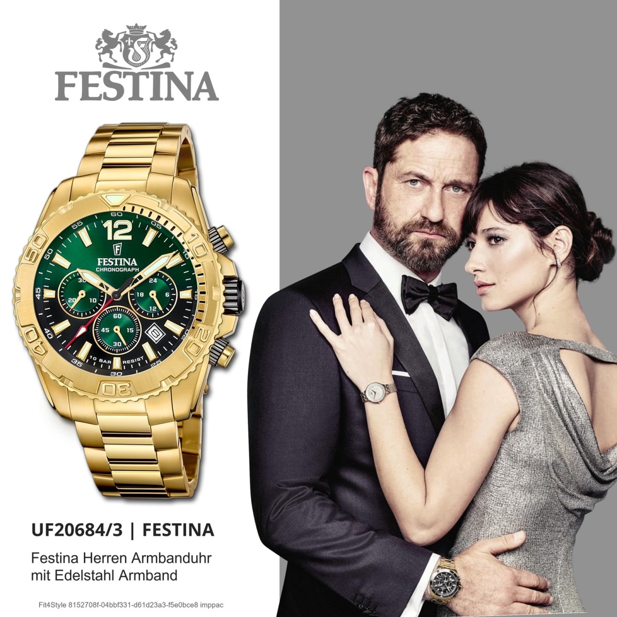 - Kurzbeschreibung: Festina Herrenuhr Timeless Chronograph Armbanduhr Edelstahl gold UF20684/3