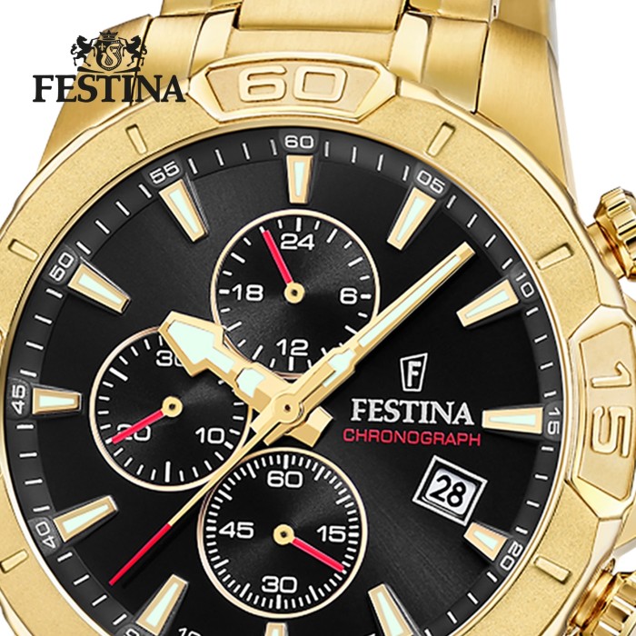 Die FESTINA Timeless Chrono Kollektion hinterlässt Eindruck mit hohem Wiedererkennungswert und raffinierten Designs. Die Kollektion hat eine diskrete zeitlose Art, die sich passend an ihr Handgelenk schmiegt.