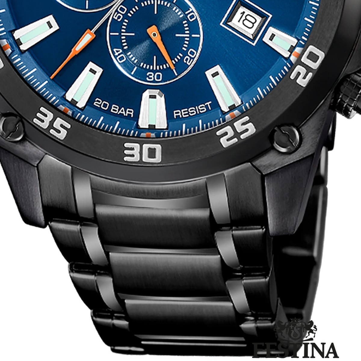 Festina Herrenuhr Timeless Chronograph Armbanduhr Edelstahl schwarz UF20735/1