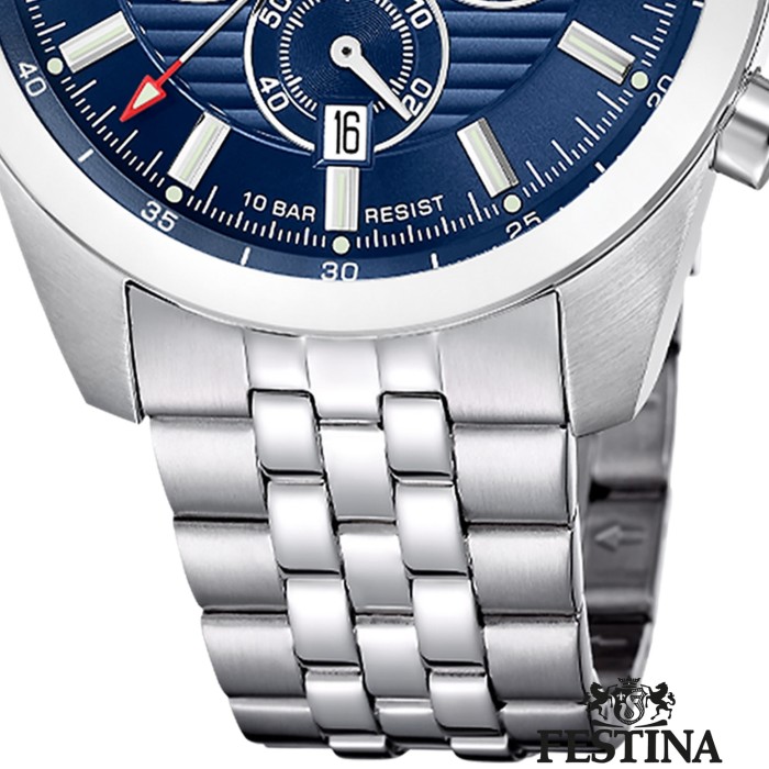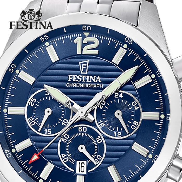 Die FESTINA Timeless Chrono Kollektion hinterlässt Eindruck mit hohem Wiedererkennungswert und raffinierten Designs. Die Kollektion hat eine diskrete zeitlose Art, die sich passend an ihr Handgelenk schmiegt.