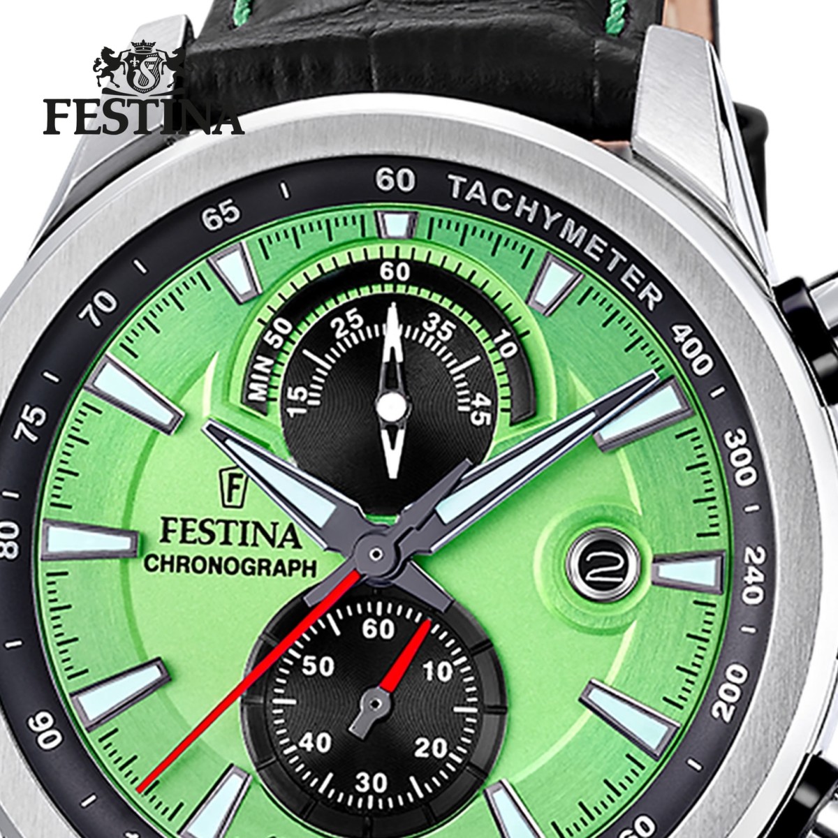 Festina Herrenuhr Timeless Chronograph Armbanduhr Leder schwarz grün UF20695/3
