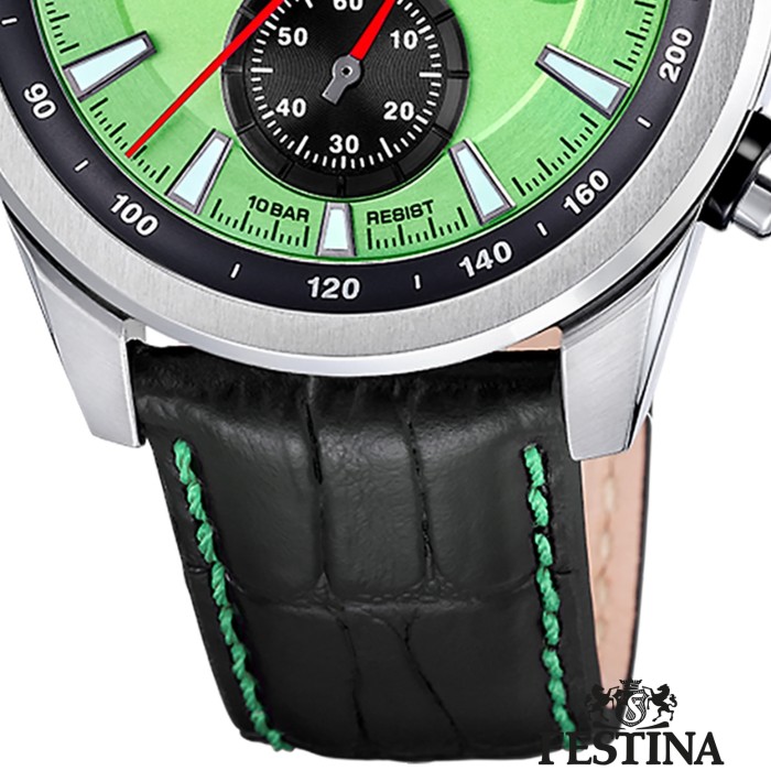 - Kurzbeschreibung: Festina Herrenuhr Timeless Chronograph Armbanduhr Leder schwarz grün UF20695/3