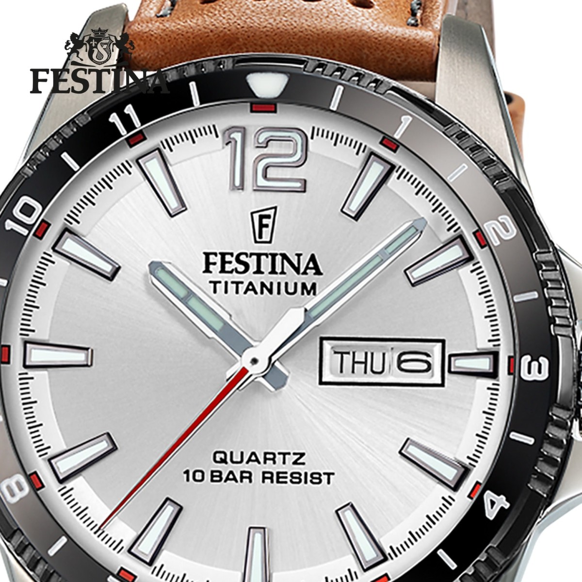 Diese einzigartige Uhr für Herren aus der aktuellen Festina Titanium Kollektion garantiert hohen Tragekomfort durch das hochwertige Leder-Armband in braun. Die Armbanduhr mit analoger Anzeige ist ein zuverlässiger Begleiter in Alltag und Freizeit.Die FESTINA Titanium Kollektion umfasst elegante und funktionale Zeitmesser für Damen und Herren. Durch die Verwendung von hochwertigem Titan ist sie extrem leicht, robust, korrosionsbeständig und zudem hypoallergen.