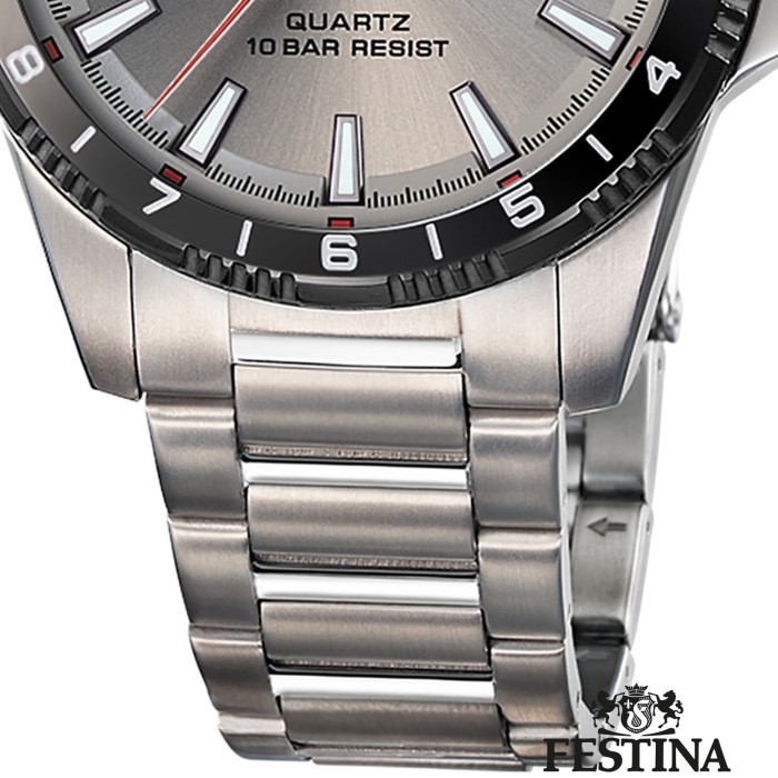 Diese einzigartige Uhr für Herren aus der aktuellen Festina Titanium Kollektion garantiert hohen Tragekomfort durch das hochwertige Titan-Armband in silber. Die Armbanduhr mit analoger Anzeige ist ein zuverlässiger Begleiter in Alltag und Freizeit.Die FESTINA Titanium Kollektion umfasst elegante und funktionale Zeitmesser für Damen und Herren. Durch die Verwendung von hochwertigem Titan ist sie extrem leicht, robust, korrosionsbeständig und zudem hypoallergen.