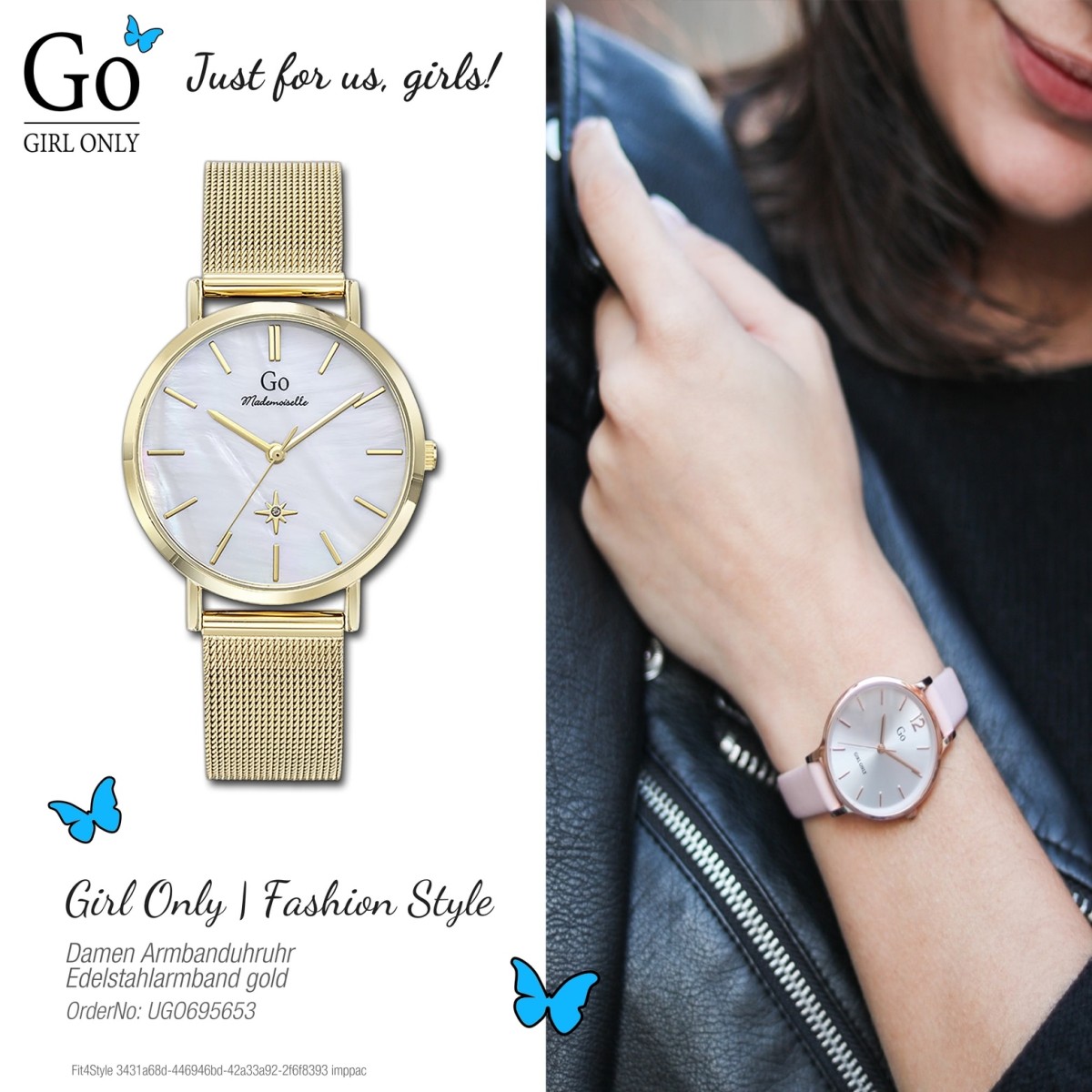 Der Schmetterling, der die Marke Girl Only symbolisiert, verkörpert das Ziel der Uhrenfirma - harmonisch und schön. Feminine und erschwingliche Uhren speziell für junge Damen, die sowohl als Modeaccessoires als auch als Zeitmesser konzipiert sind, aber auch einen unverwechselbaren Charme und Originalität haben.
