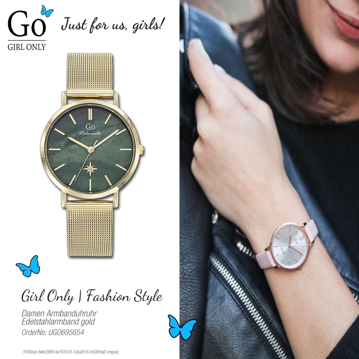 Der Schmetterling, der die Marke Girl Only symbolisiert, verkörpert das Ziel der Uhrenfirma - harmonisch und schön. Feminine und erschwingliche Uhren speziell für junge Damen, die sowohl als Modeaccessoires als auch als Zeitmesser konzipiert sind, aber auch einen unverwechselbaren Charme und Originalität haben.