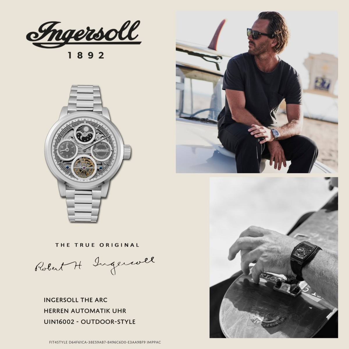 Die Ingersoll -The Arc- Kollektion umfasst elegante Herrenuhren mit Automatikwerk. Die Modelle zeichnen sich durch ihren klassischen Look und ihre hochwertige Verarbeitung aus.