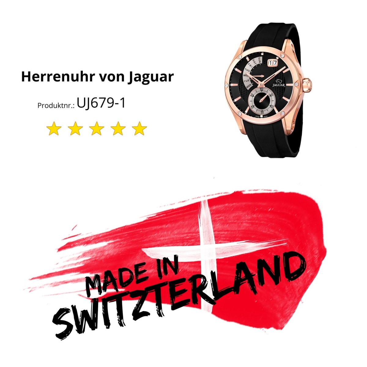 JAGUAR -Swiss Made- Seit über 70 Jahren produziert Jaguar exklusive Uhren von höchster Qualität. Diese zeichnen sich besonders durch ihr einzigartiges Design und höchste Präzision aus. Vor Allem Uhrenliebhaber erfreuen sich über die Schmuckstücke aus der Schweizer Uhrenmanufaktur.