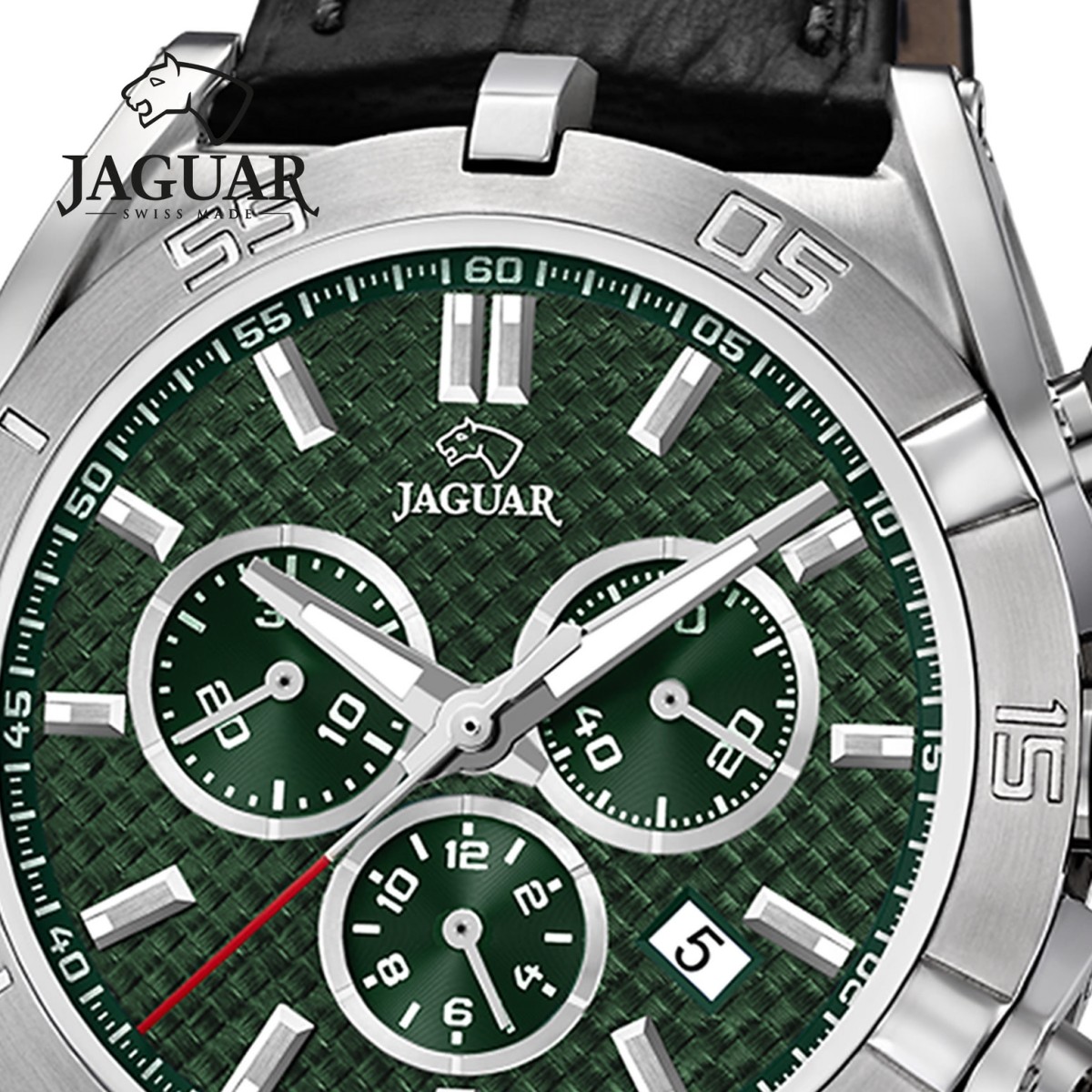 Diese einzigartige Uhr für Herren aus der aktuellen Jaguar Executive Kollektion garantiert hohen Tragekomfort durch das hochwertige Leder-Armband in schwarz. Der Chronograph und präzisem Armbanduhr ist ein zuverlässiger Begleiter in Alltag und Freizeit.- besondere Eigenschaften