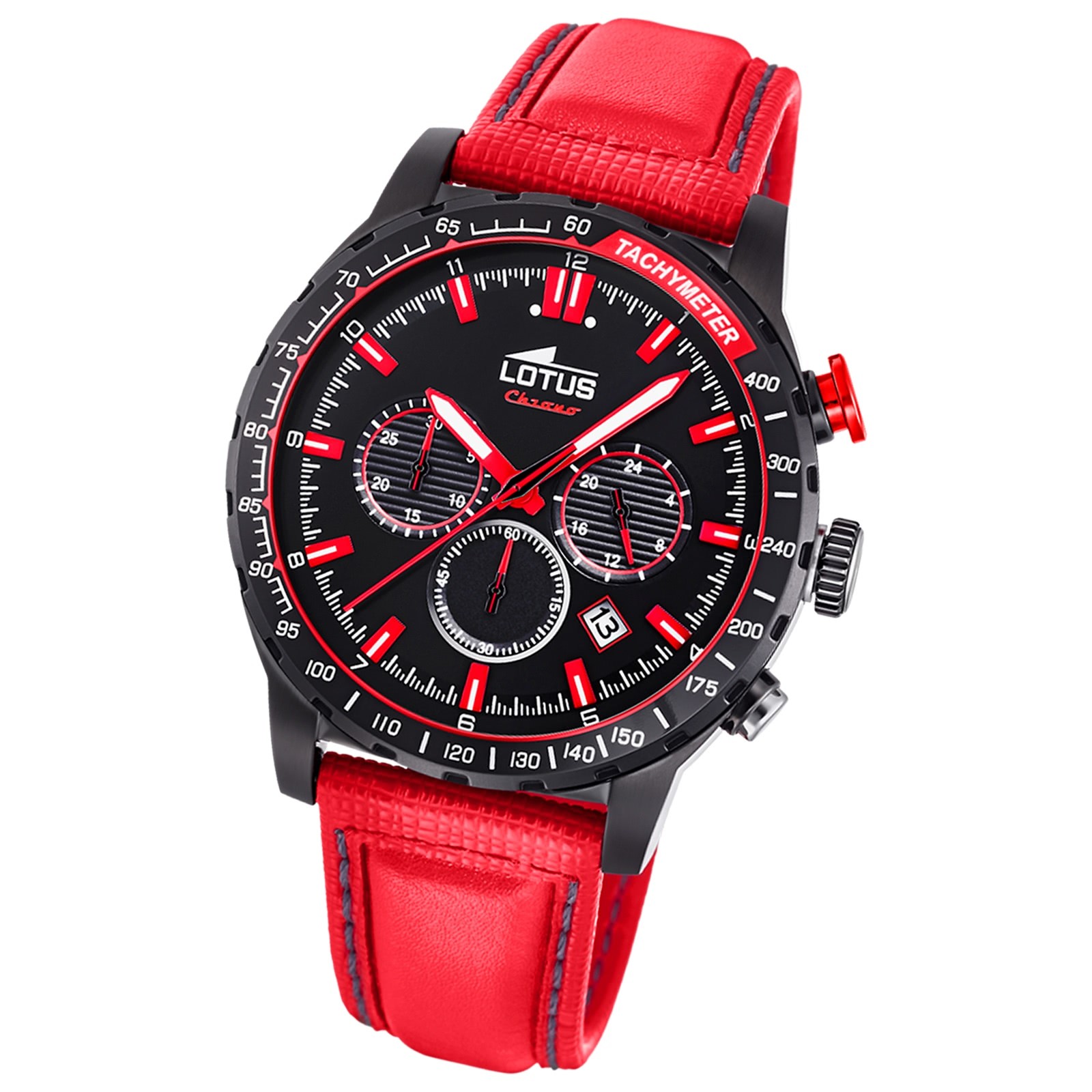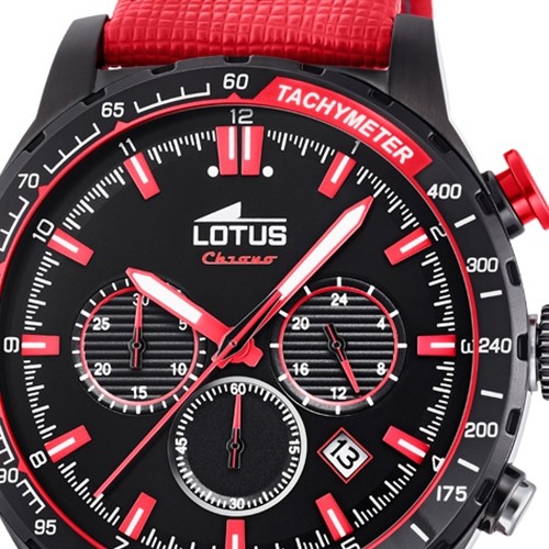 Diese Sport Uhr für Herren aus der exklusiven LOTUS R-Kollektion verfügt über ein hochwertiges Leder-Armband in rot. Das analoge Quarzwerk und die Wasserdichte bis 5 bar machen diese Armbanduhr zu einem besonders zuverlässigen Begleiter.- besondere Eigenschaften