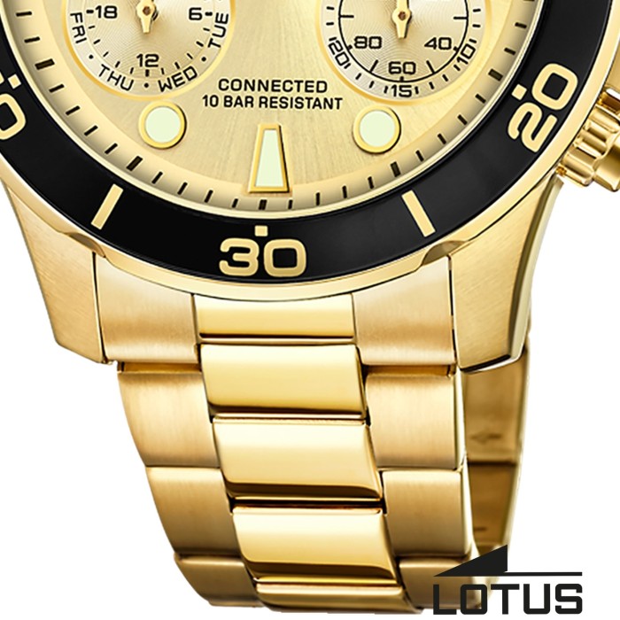Diese einzigartige Uhr für Herren aus der aktuellen Lotus Classic Kollektion garantiert hohen Tragekomfort durch das hochwertige Edelstahl-Armband in gold. Der Chronograph und präzisem Armbanduhr ist ein zuverlässiger Begleiter in Alltag und Freizeit.Die Markenuhren der spanischen Uhrenmarke Lotus sind bekannt für ihre hochwertige Fertigung und ihr elegantes Design. Sie verbinden frisches Design mit traditioneller Uhrmacherkunst. Lotus Uhren sind ein tolles Accessoire für Uhrenliebhaber weltweit.
