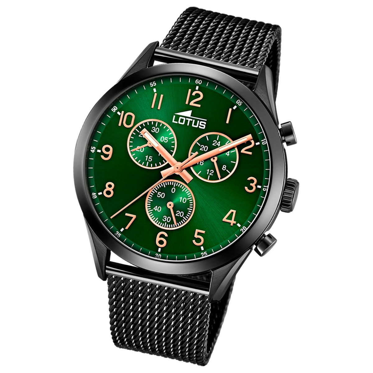 Diese einzigartige Uhr für Herren aus der aktuellen Lotus Minimalist Kollektion garantiert hohen Tragekomfort durch das hochwertige Edelstahl-Armband in schwarz. Der Chronograph und präzisem Armbanduhr ist ein zuverlässiger Begleiter in Alltag und Freizeit.Die Markenuhren der spanischen Uhrenmarke Lotus sind bekannt für ihre hochwertige Fertigung und ihr elegantes Design. Sie verbinden frisches Design mit traditioneller Uhrmacherkunst. Lotus Uhren sind ein tolles Accessoire für Uhrenliebhaber weltweit.