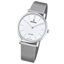 Die Marke Festina wurde bereits im Jahre 1902 gegründet und das Unternehme hat mittlerweile Standorte in mehr als 85 Ländern auf der ganzen Welt. Damit ist Festina eine Weltmarke, die für Leidenschaft und Klasse im Bereich Damen-und Herrenuhren steht. Schon die Römer sagten 500 Jahre vor Christus "Festina", was in seiner Wortherkunft so viel bedeutet wie Beeil dich. Festina begann als ein kleines schweizerisches Unternehmen und steht heute für weltweite Qualität zu fairen Preisen und sehr bekannten Damen- und Herrenarmbanduhren. Jede Uhr unterliegt der höchsten schweizerischen Qualitätskontrolle. Die verarbeiteten Materialien wie zum Beispiel, glänzendes Edelstahl oder hochwertiges Leder führen zu einem sehr hohen Tragekomfort und spiegeln die spitzen Qualität wider, die die Marke Festina schon seit Jahren setzt.