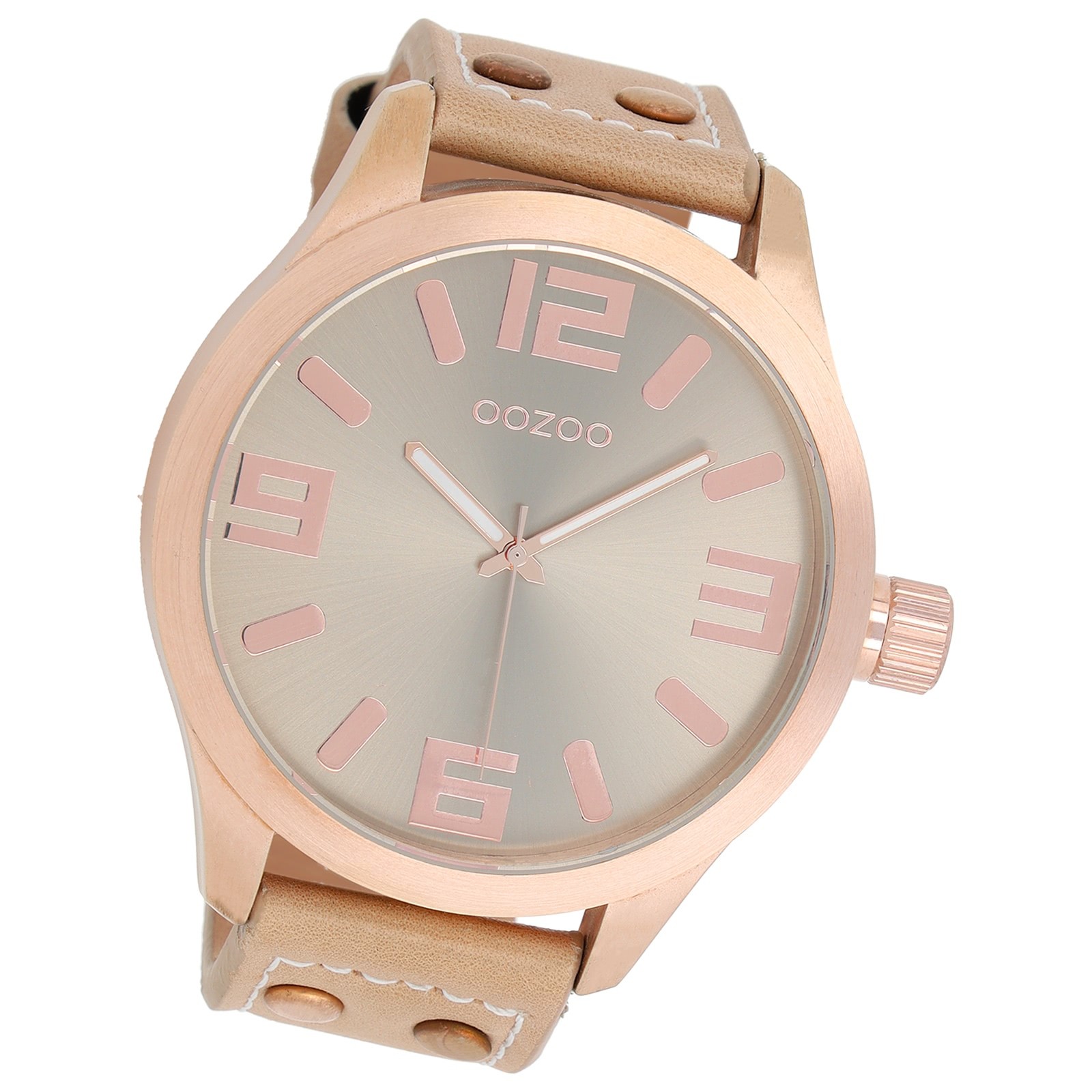Diese Fashion Uhr für Damen aus der exklusiven Oozoo Oozoo Timepieces-Kollektion verfügt über ein hochwertiges Leder-Armband in beige. Das Gehäuse der Uhr ist extra groß (ca. 51mm). Das analoge Uhrwerk und das Uhrenglas aus Mineralglas machen diese Armbanduhr zu einem hochwertigen und modischen Begleiter.- besondere Eigenschaften