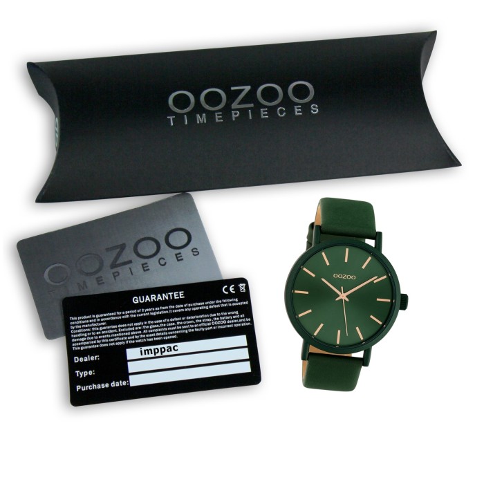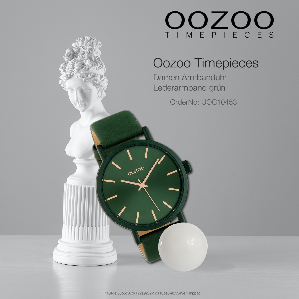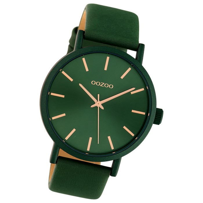 Diese Fashion Uhr für Damen aus der exklusiven Oozoo Timepieces-Kollektion verfügt über ein hochwertiges Leder-Armband in grün. Das Gehäuse der Uhr ist groß (ca. 42mm). Das analoge Uhrwerk und das Uhrenglas aus Mineralglas machen diese Armbanduhr zu einem hochwertigen und modischen Begleiter.Die Vintage Kollektion von Oozoo besticht durch die schlichten aber dennoch besonderen Designs. Dezente Farben und Ziffernblätter ohne viel Schnickschnack bilden die Grundlage dieser Uhrenmodelle.