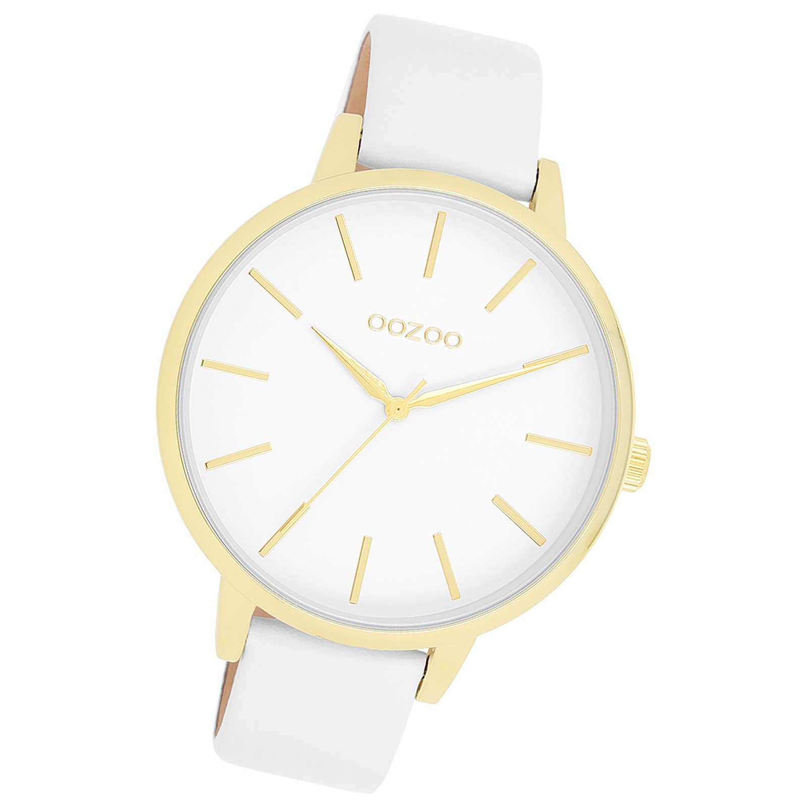 Diese Fashion Uhr für Damen aus der exklusiven Oozoo Oozoo Timepieces-Kollektion verfügt über ein hochwertiges Leder -Armband in weiß. Das Gehäuse der Uhr ist groß (ca. 42mm). Das analoge Uhrwerk und das Uhrenglas aus Mineralglas machen diese Armbanduhr zu einem hochwertigen und modischen Begleiter.- besondere Eigenschaften