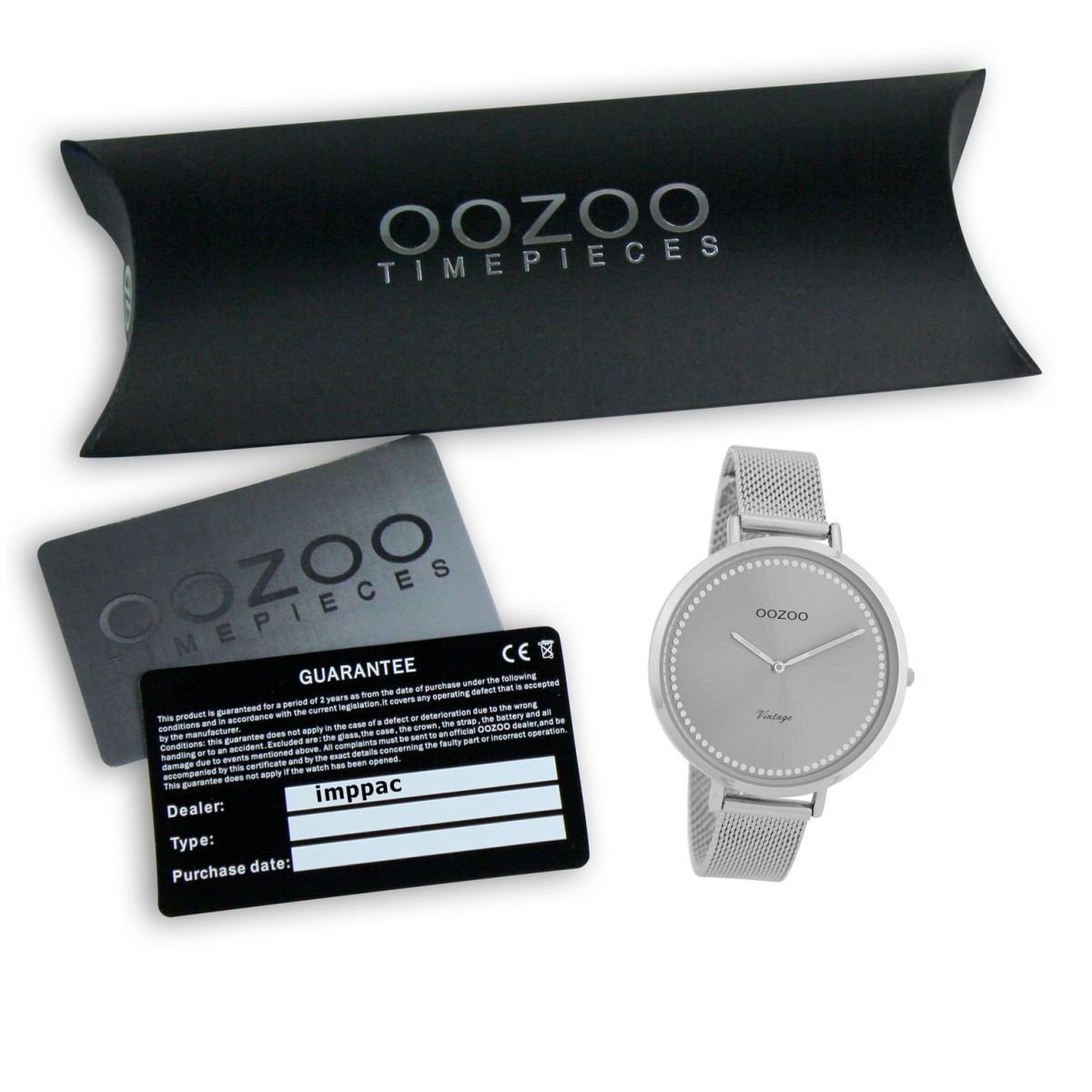 Diese Fashion Uhr für Damen aus der exklusiven Oozoo Vintage Series-Kollektion verfügt über ein hochwertiges Edelstahl-Armband in silber. Das analoge Quarzwerk und die Wasserdichte bis 3 bar machen diese Armbanduhr zu einem besonders zuverlässigen Begleiter.- besondere Eigenschaften
